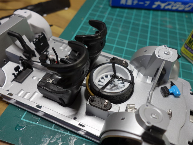 内装を進めていきます。シートには左右どちらか分かるようにRとLの刻印入りです。