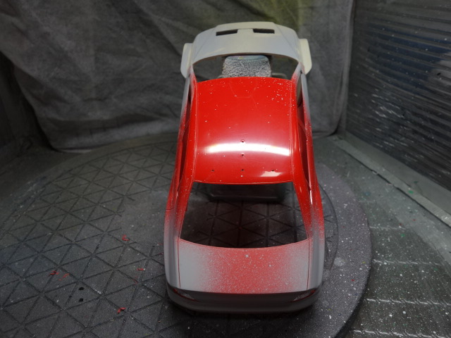 とりあえず、塗装に入っていきますが、発色の良さを狙ってした色にオレンジを吹いて