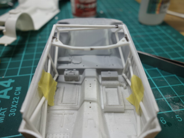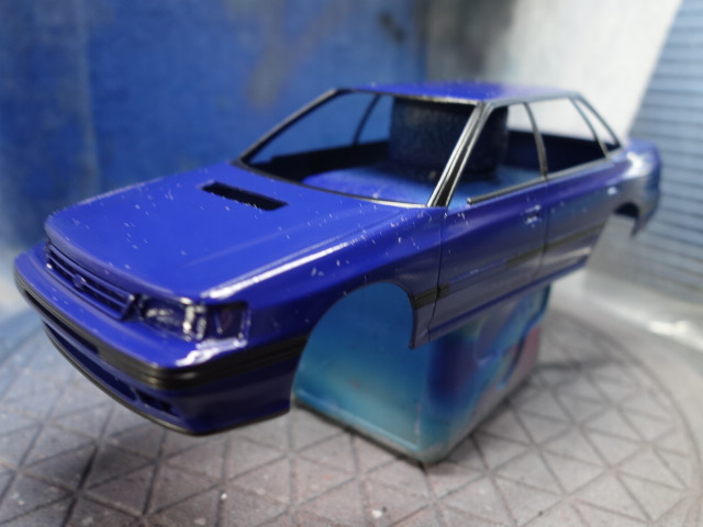バンパーや窓枠等に黒を吹いてから、ボディにクリアを吹いて、デカールに備えたいと