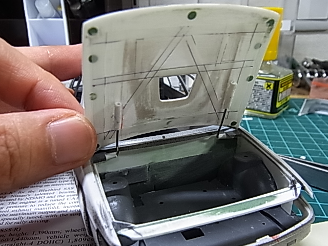 とりあえず、ボンネットが開くように、簡単にヒンジを付けました。