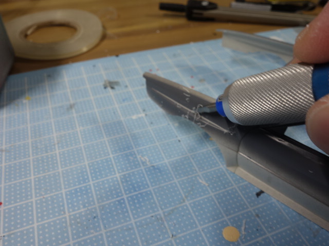 スジボリも、0.15㎜のカーバイトで掘り増しします。まあ、特に堀り増さなくても