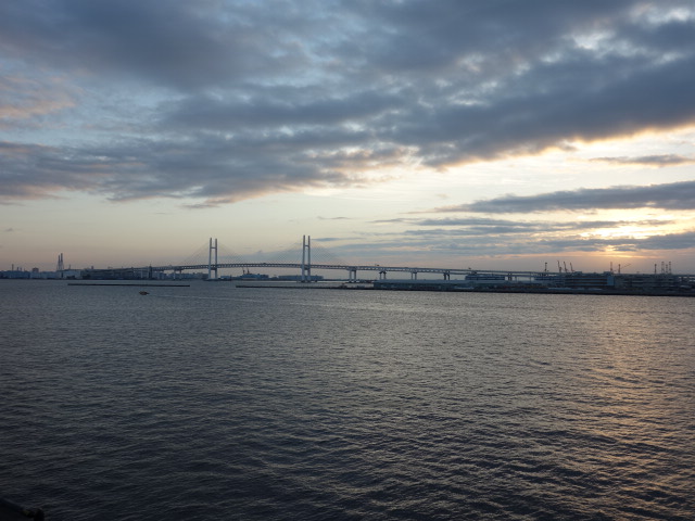 朝6:30の、大さん橋からベイブリッジの眺め。ス・テ・キ♥