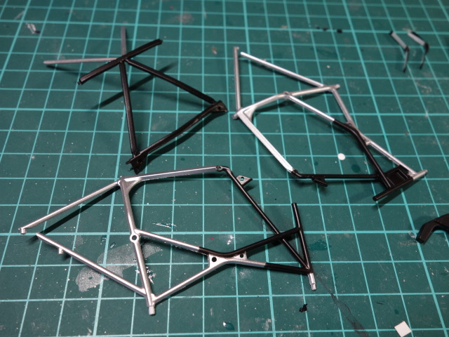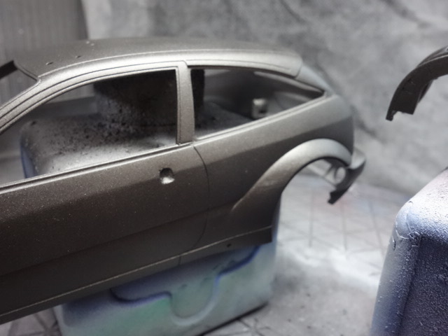 仕方ないので、ミッチャクロンを吹いてからタミヤのチタンシルバーを吹きました。