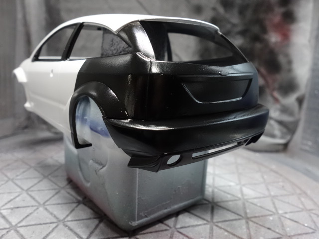 リアバンパーも結構ギチギチですね。塗装後に接着したら絶対ハマらないと思いますので、