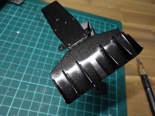 デカールを貼る前に、下地としてメタルブラックを吹いてからクリアーコートしています。