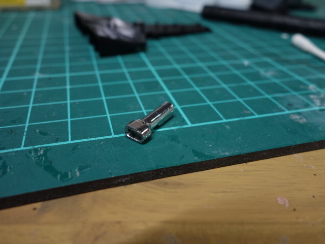 マフラーですが、メッキ表現になってるのでメッキを剥離後塗装したいと思います。が、