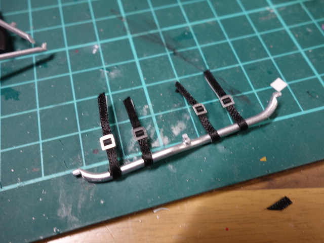 マッドフラップはトレーシングペーパーを着色して再現してます。ステーのプラ板がオーバー