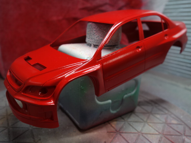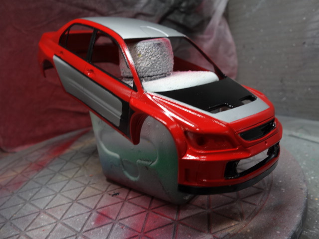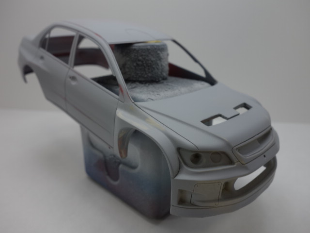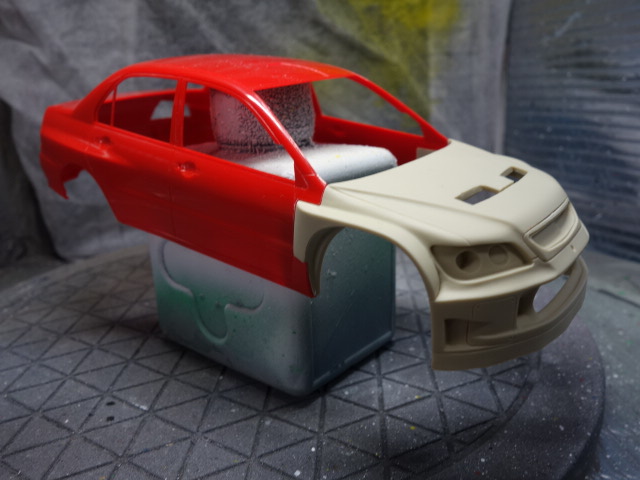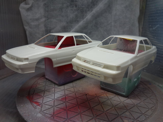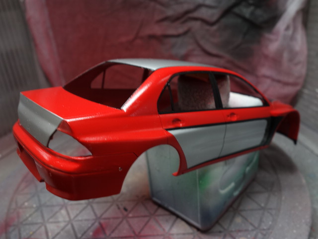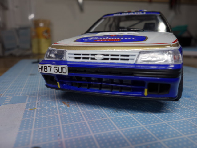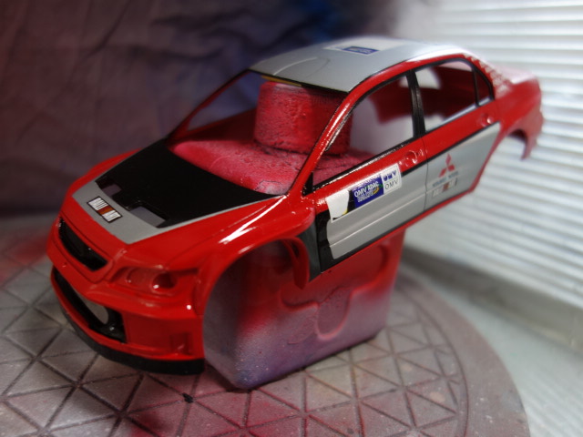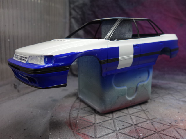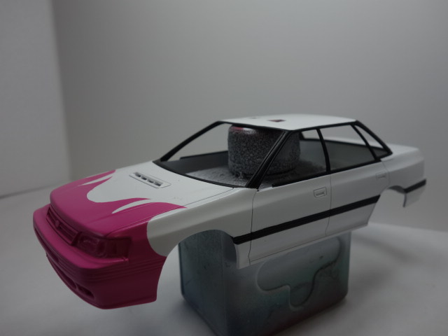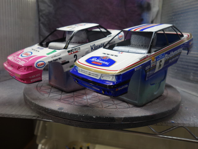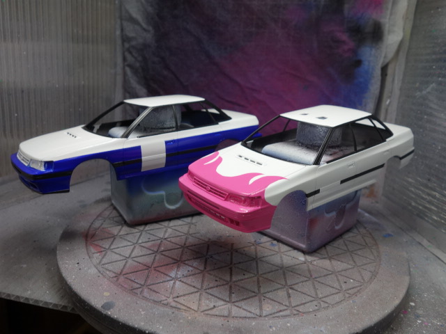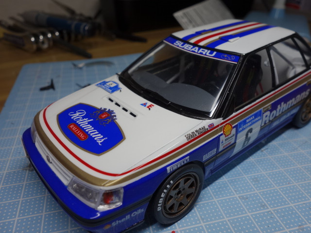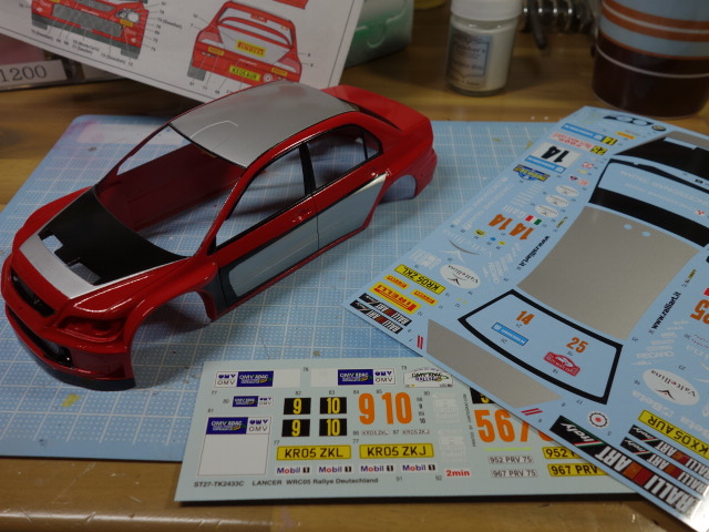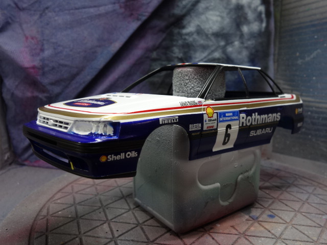 さあ、レガシィです。ボディ塗装、デカール貼りに突入していきます。