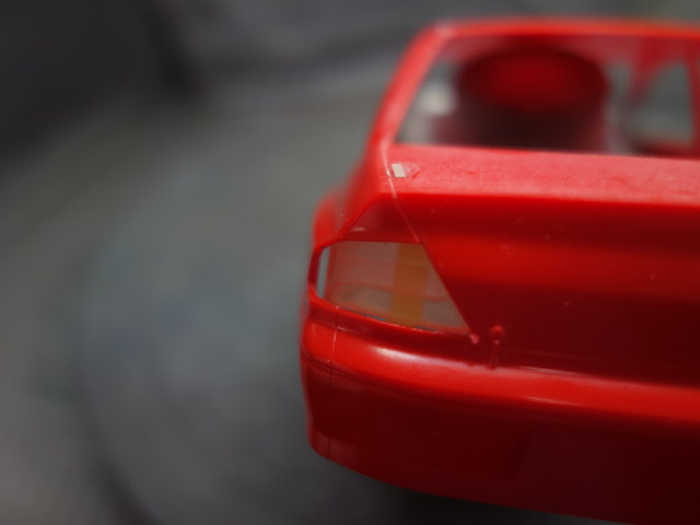 付属のリアランプ部分ですが、普通に組んだだけでは隙間が空きますので、
