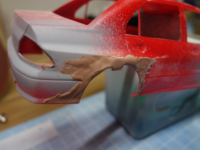 このあと、リアフェンダーもパテを盛ってボリュームアップしていこうと思います。