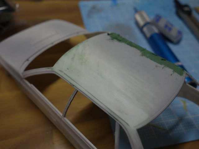 フロントの合体部分です。なかなか合わせ目が消えてくれなくて格闘しております。