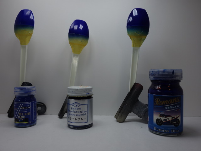 塗料も考慮しなおします。候補は左からバルケッタのFW16用、フィニッシャーズの