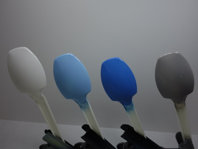 下地を白にしたスプーンに吹いていきます。まずはFW16用。おお、イメージに近い明るい