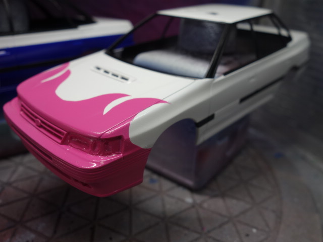 クレオスのピンクと色の元の素マゼンダを混ぜたものを吹きましたが、うーん、、、