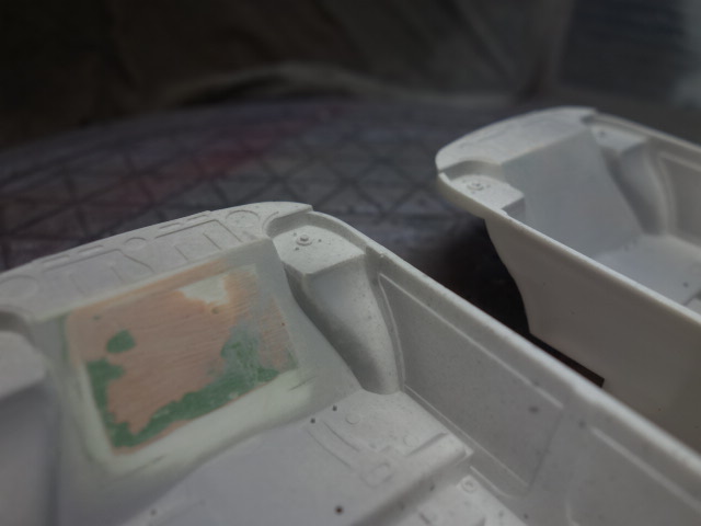 内装ですが、前作同様にリアバルクヘッドのスムーズ化を行います。あんまり見えないから