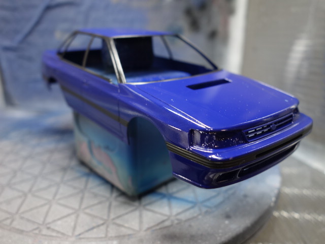 バンパーや窓枠等に黒を吹いてから、ボディにクリアを吹いて、デカールに備えたいと