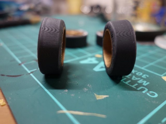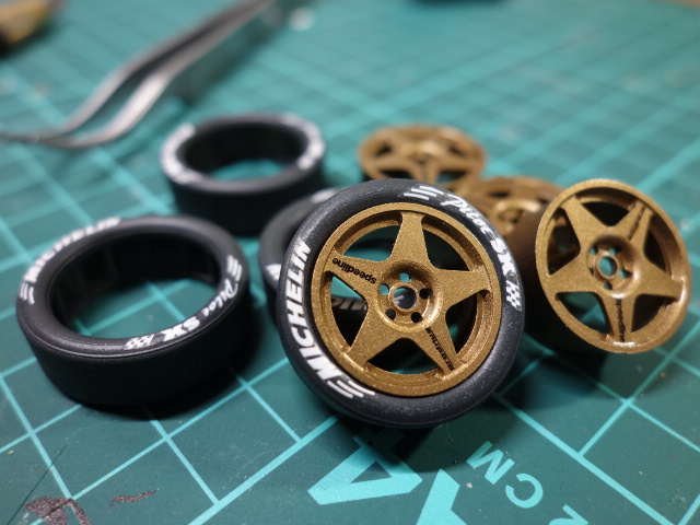造形で、前後タイヤでテーパーが分けられている芸の細かさ。ほぼ無加工で車高も決まり