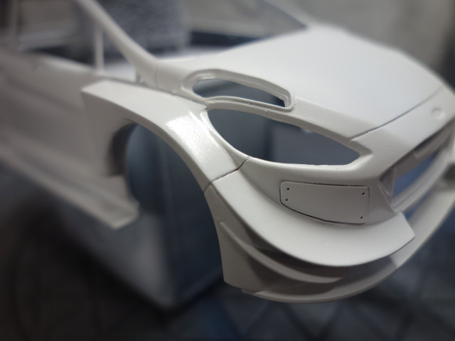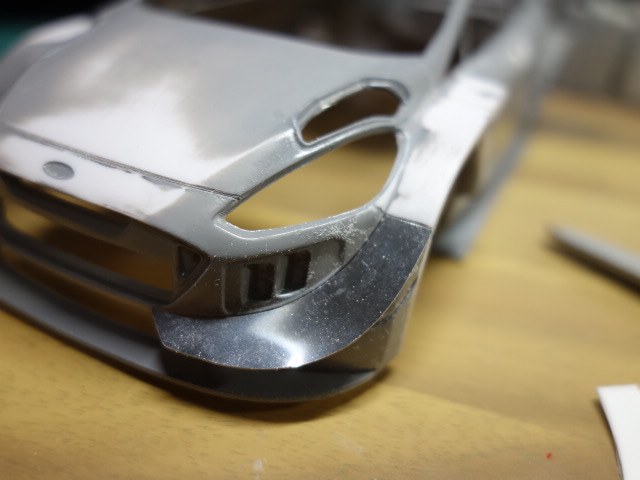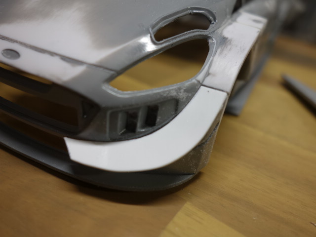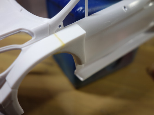 先に取り付けたフロントフェンダーのパーツですが、パテも使ってつなぎ目を