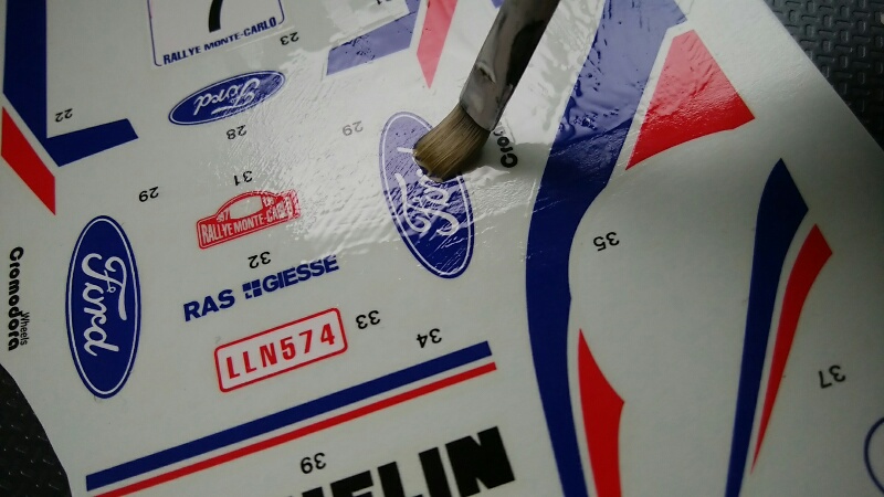 こんな感じで、デカールに塗布します。