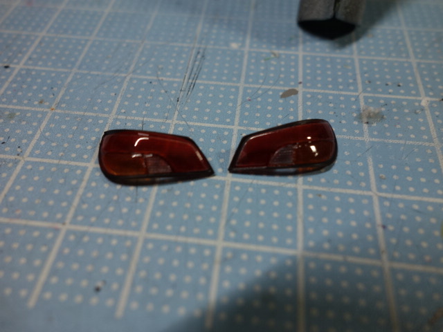 テールランプも、レッド、オレンジを塗分けた後、クリアブラックを上から吹きました。
