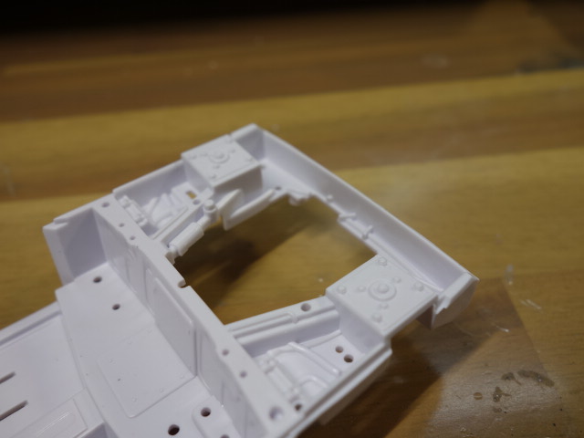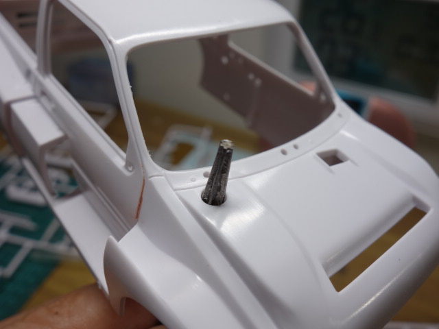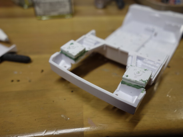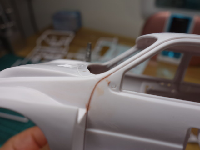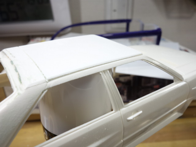 ルーフに0.5mmのプラ板を貼ってみました。合わせ目処理中。また、それに合わせて