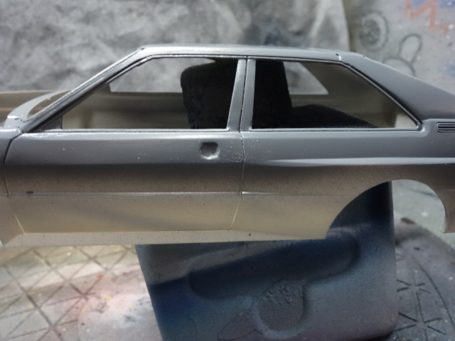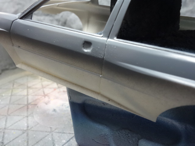 念のための脱脂後、ガイアのステンレスシルバーを吹いたのち