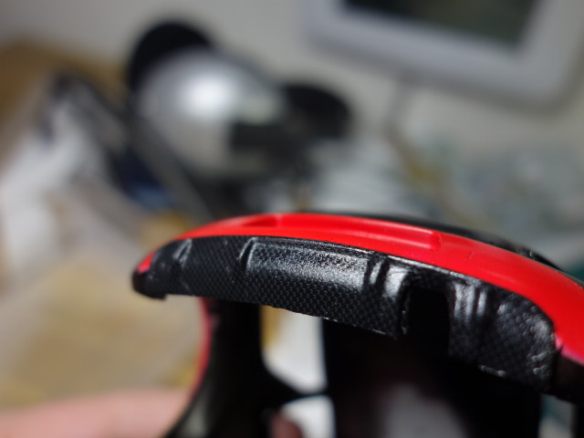 ほんとに、糊が死んでいて、硬くてすぐ割れてしまします。あーもう、ボディの赤と