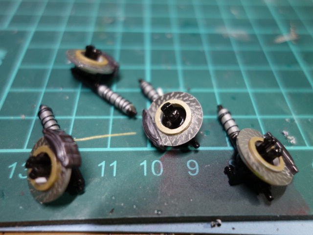 キットのショック、サスがあんまりにも残念なモールドだったので、一旦削り落とし
