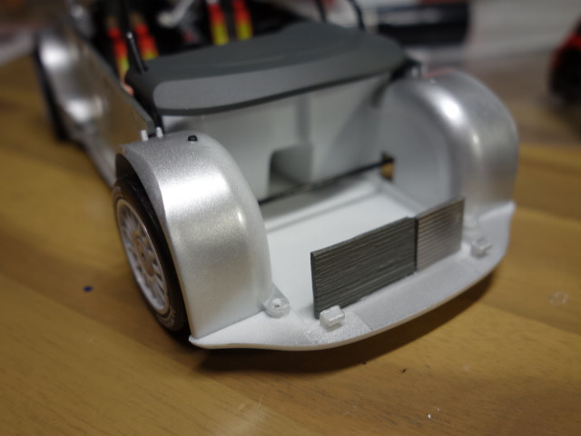 リアディフューザー、ウイングは、タミヤのカーボンデカールを貼り付けています。また