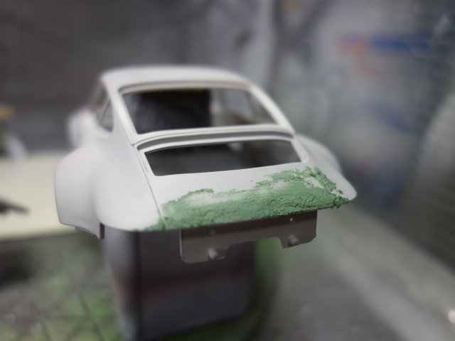 ライトユニットです。派手なヒケがあるので、パテで埋めて均したんですが、うーん?