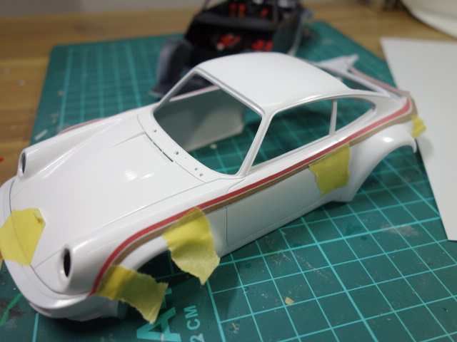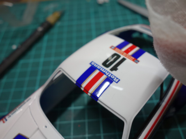 ふいー・・。とりあえず、デカール貼りは終了いたしました。これから、クリアを吹いて