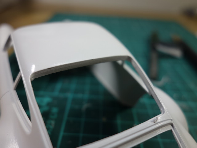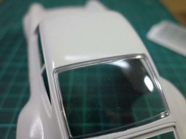 実車はギロチンウインドウが付いてますが、キットは再現されていないので、塩ビ板で