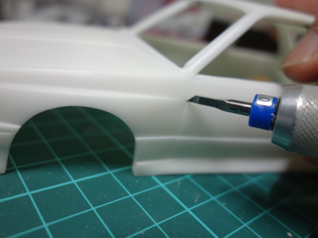 側に再現されていますので、ウインドウ側のモールドを削り落としていきます。