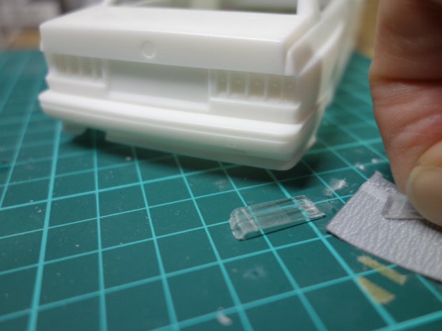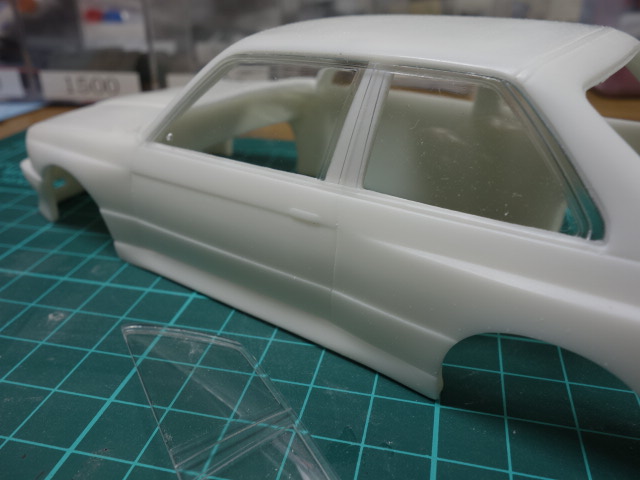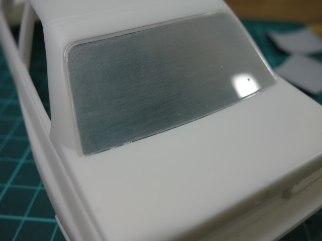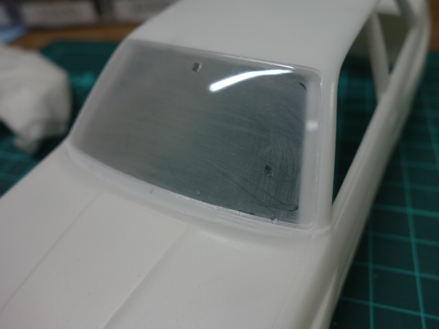 内装部分です。リアガラス部分が干渉しますので、削って合わせていきます。