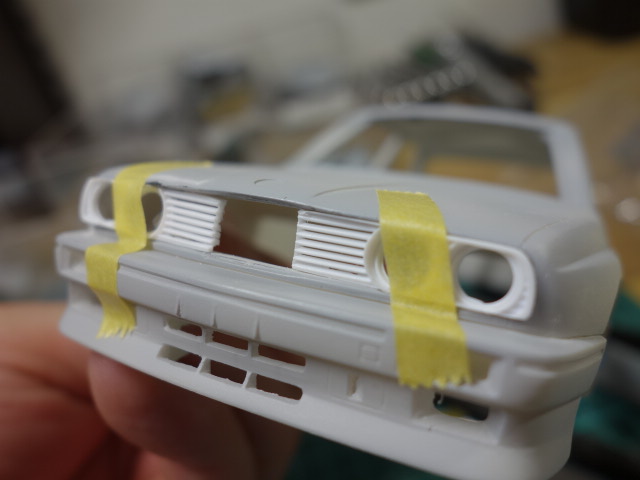 フロントグリルです。かなり幅を詰めてありますので、キットのパーツのままでは