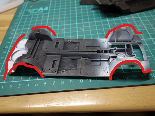 ボディは肉厚になっていますので、相対してシャーシをカットしていきます。