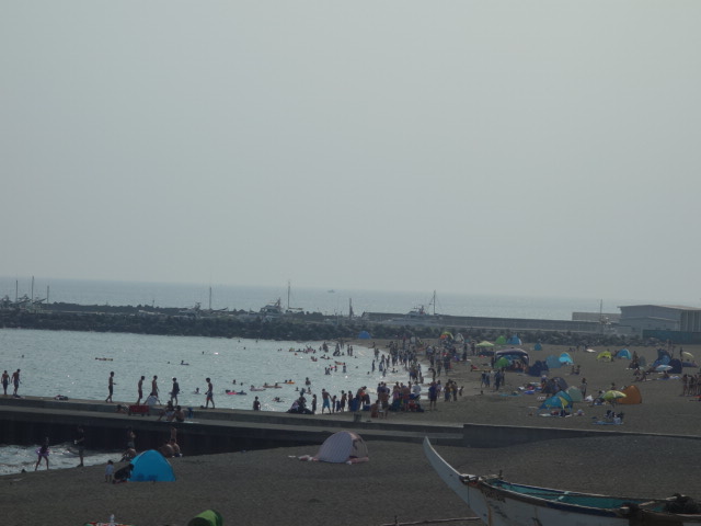 浜も海も、人でびっちりです。駐車場も県外ナンバーが多く停まってますね。