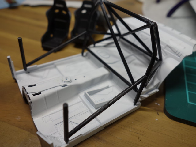 内装です。ロールケージも、ボディの肉厚が増しているので、幅詰めを行います。しっかり