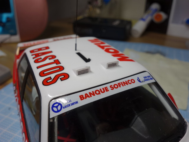 ちょいちょいっと、小物を付けていきます。マッドフラップはトレーシングペーパーを
